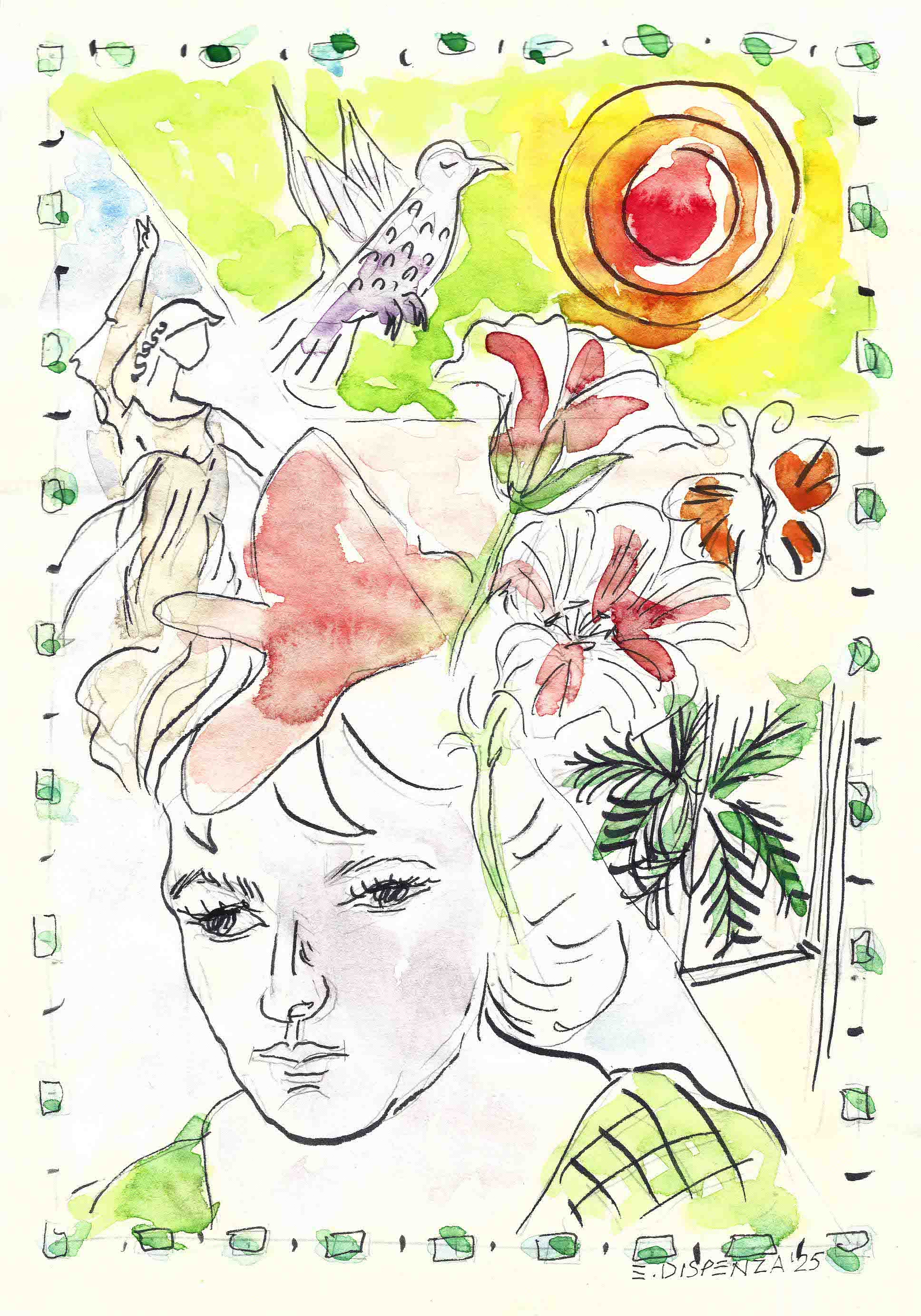 Inchiostro, acquerelli (ink, watercolours), 18 x 18 cm