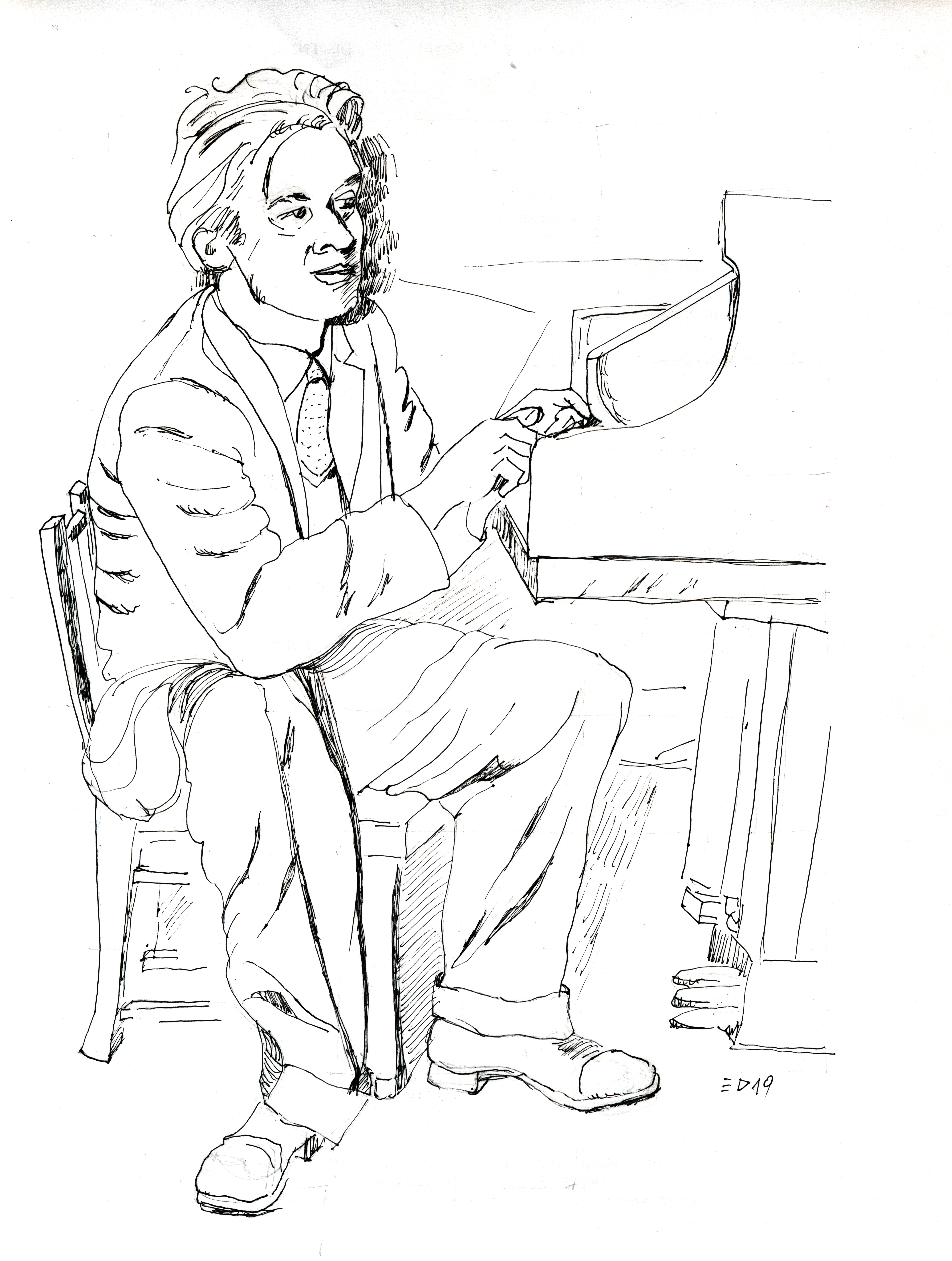 Drawing – Pianist and his piano chair, 2019